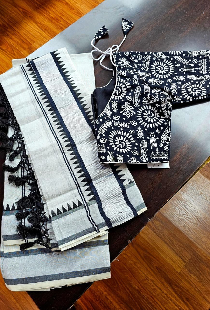 Silver tissue set mundu with...