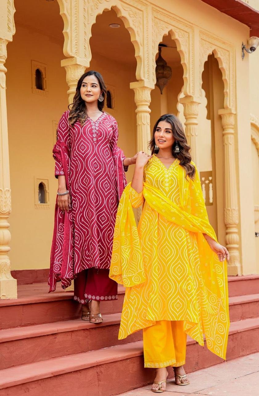 CHRISTMAS SPECIAL Cotton bandini printed Aline kurti with pant and cotton printed dupatta Dhs 95+ vat. د.إ 99.75 VAT included