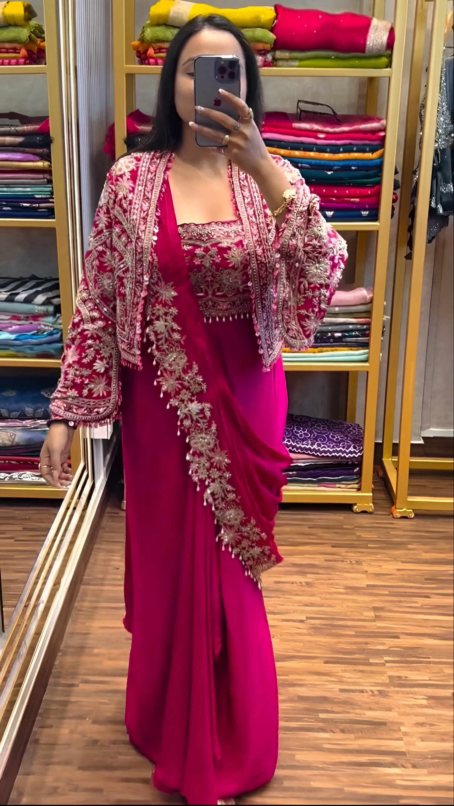 Ready to wear saree with coat . Rich work Perfect for CHRISTMAS Dhs 155 + vat FREE DELIVERY