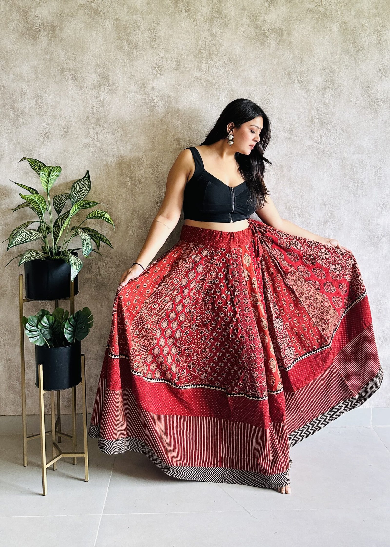 COTTON AJRAKH NATURAL DYE HANDBLOCK PRINT KALI SKIRT 8 meter gher (flare)