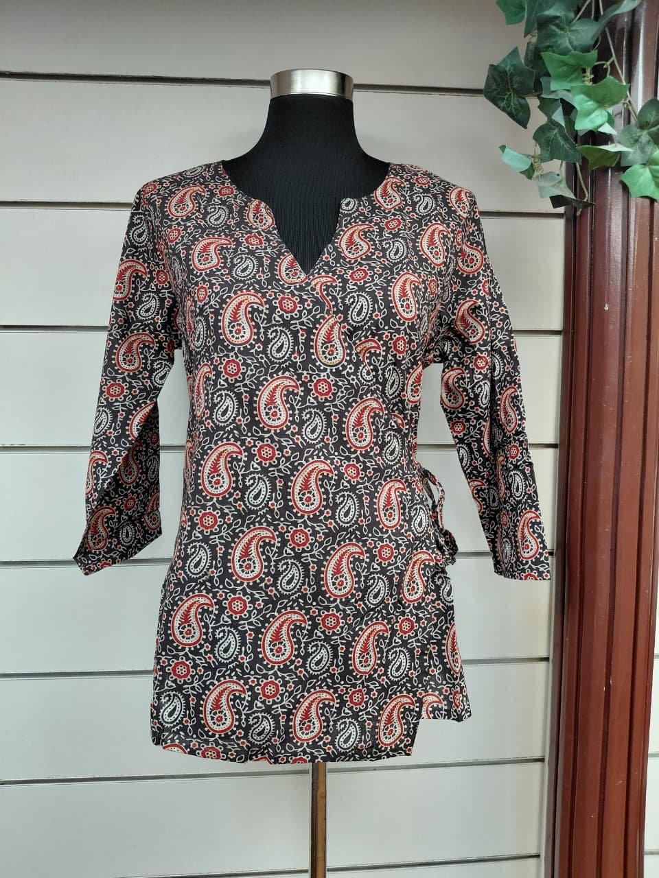 Cotton ajrakh wrap around short top dhs35+Vat