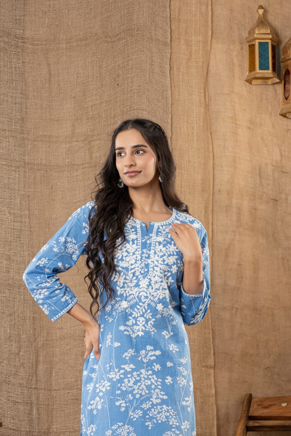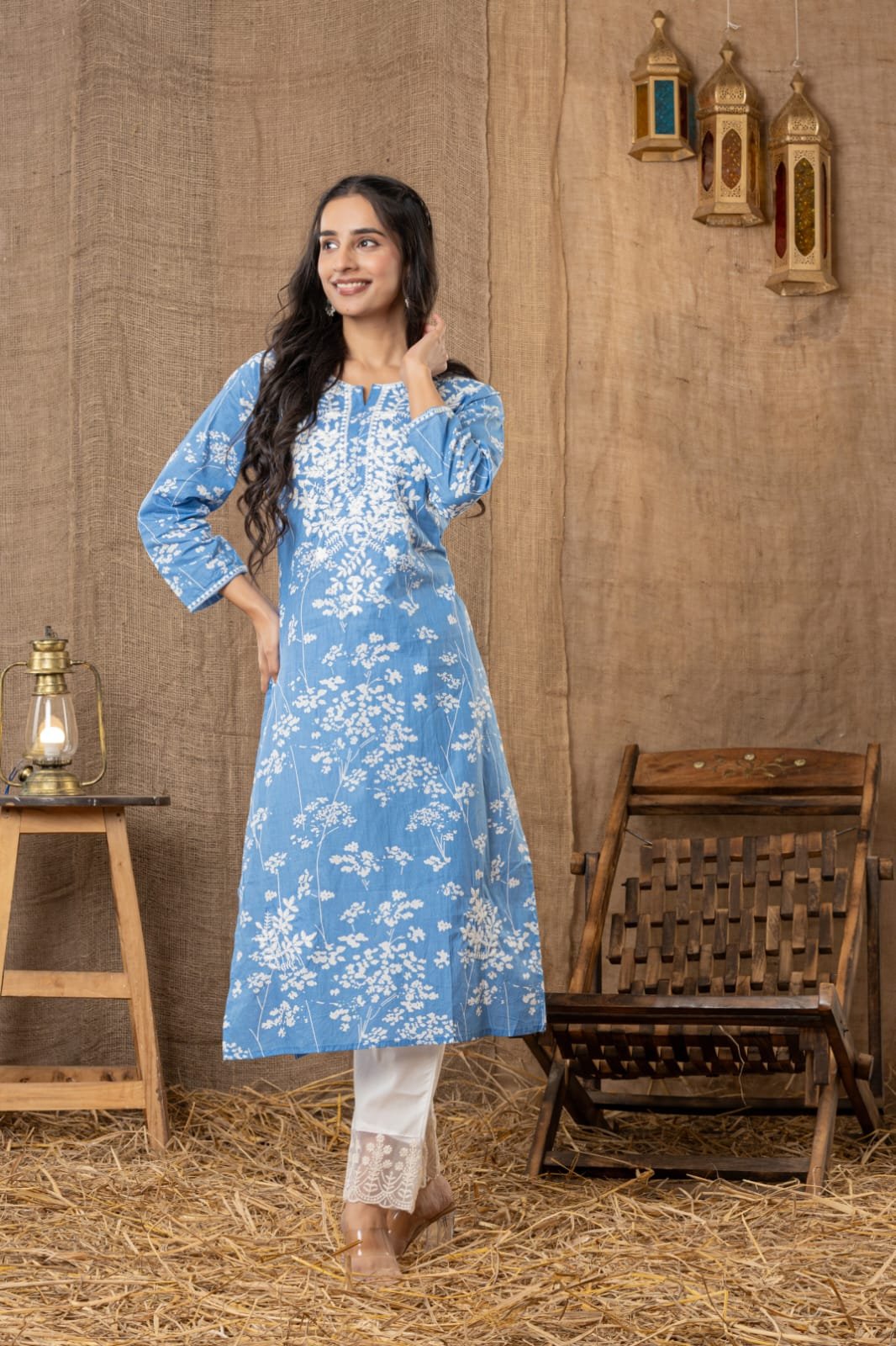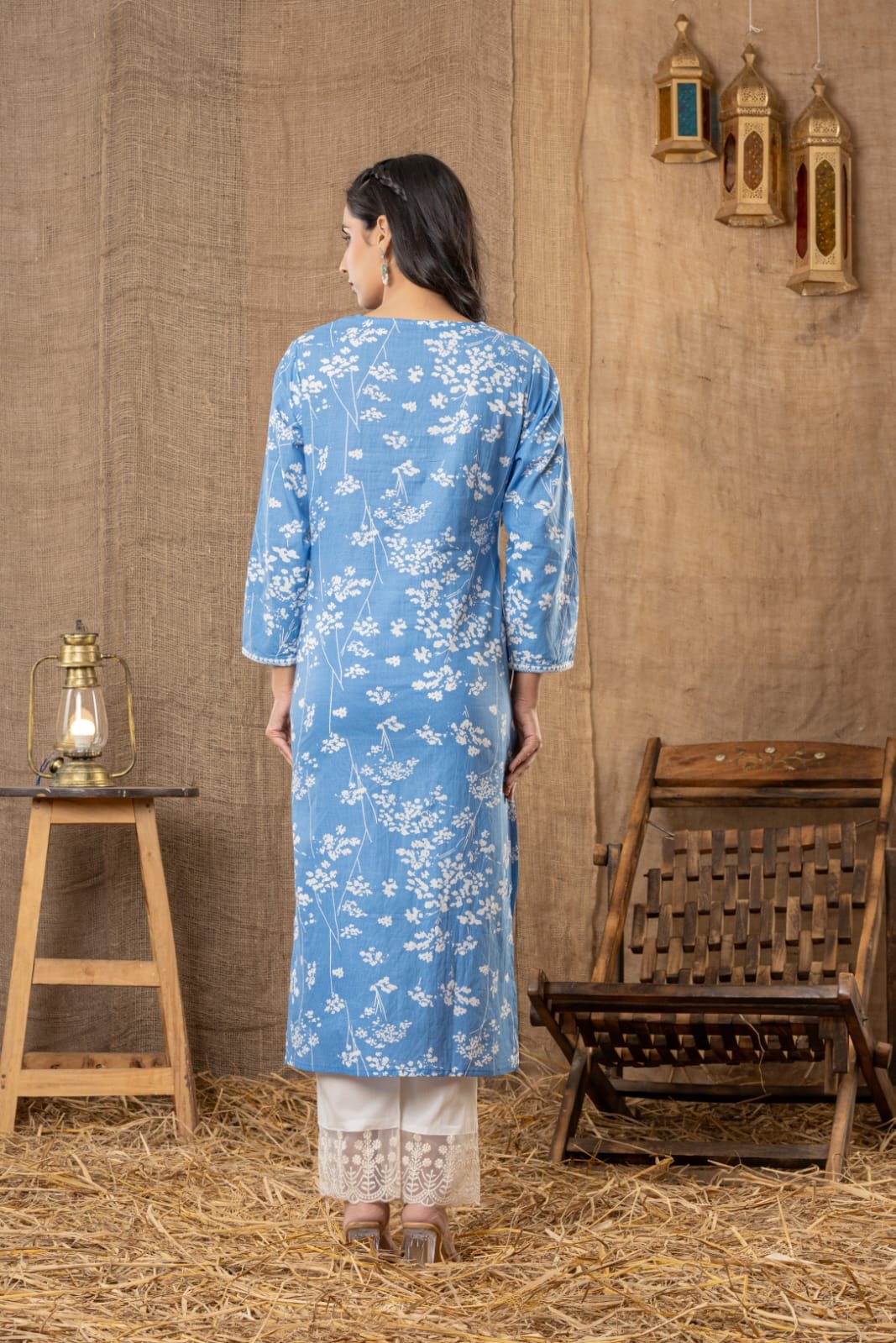 Cotton floral printed Chikankari kurti with palazzo 2 pcs set dhs 125+vat