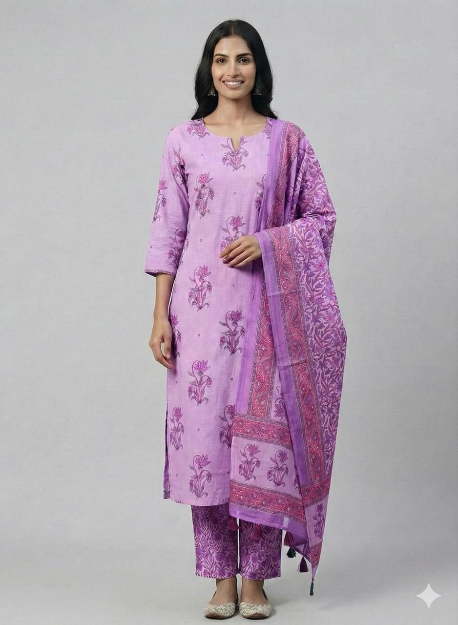 Cotton floral printeddetailed mirror work kurti with floral pant and dupatta 3 pcs set dhs 98+vat د.إ 102.90 VAT included