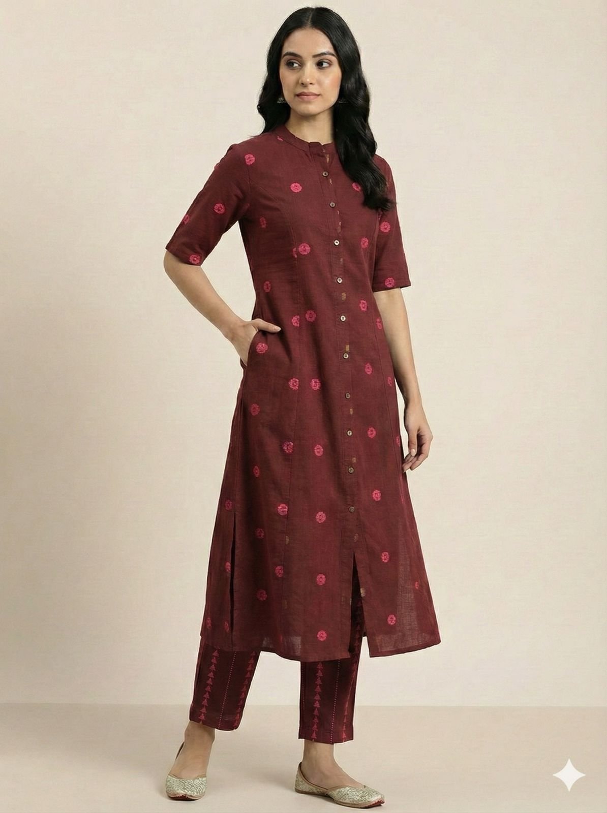 Khadi cotton printed Aline kurti with side pockets with pant 2 pcs set ( Coord set ) dhs 68+vat