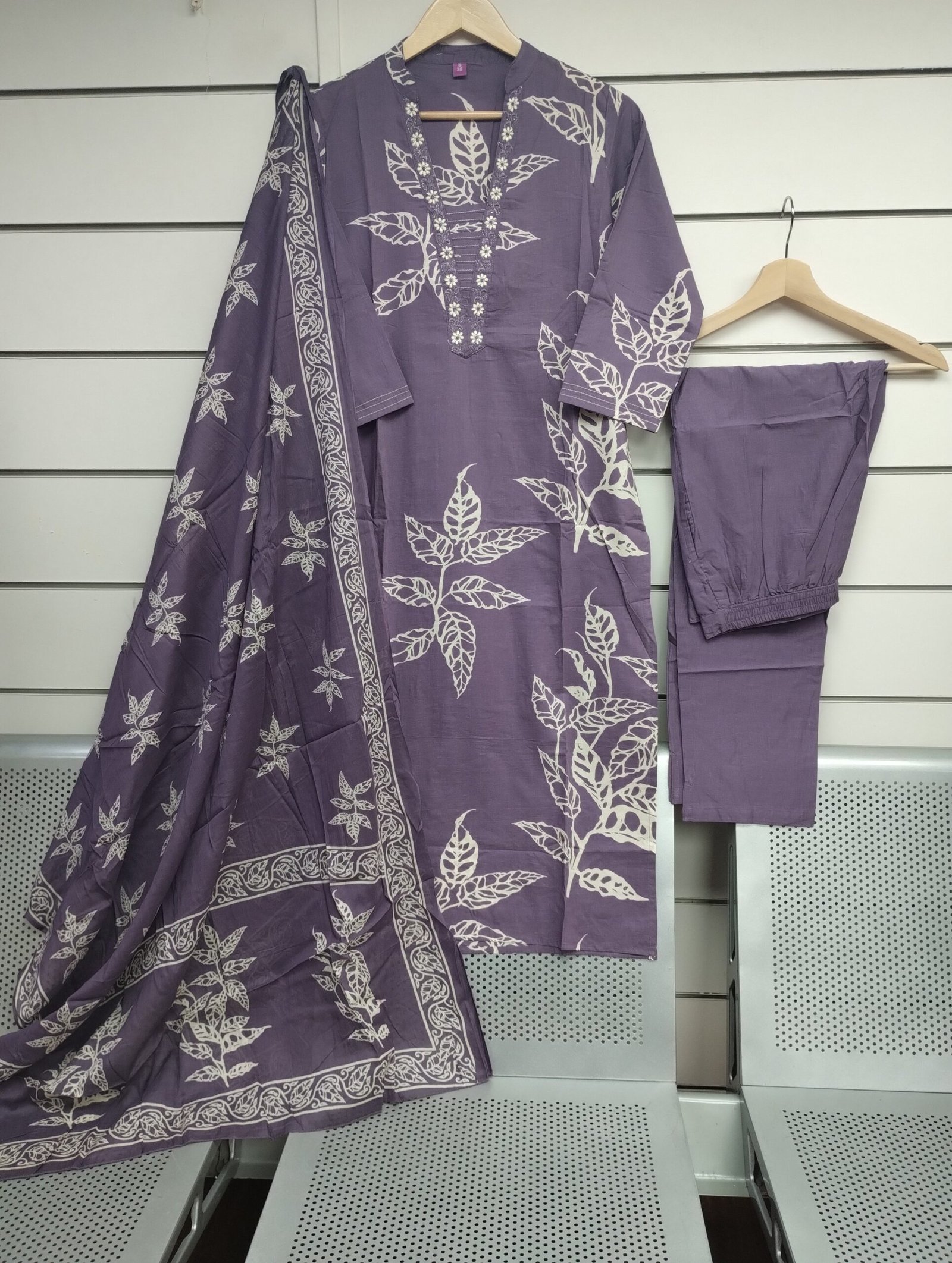 Cotton solid kurti with kalmkari dupatta and pant 3 pcs set dhs 125+vat