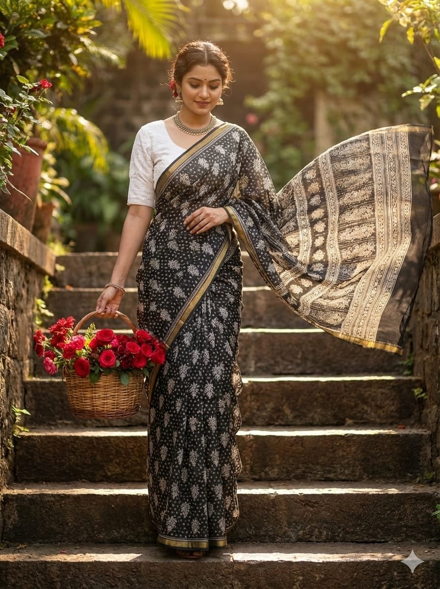 Georgette saree & cotton hekoba blouse combo offer dhs 99, Original price is dhs 108
