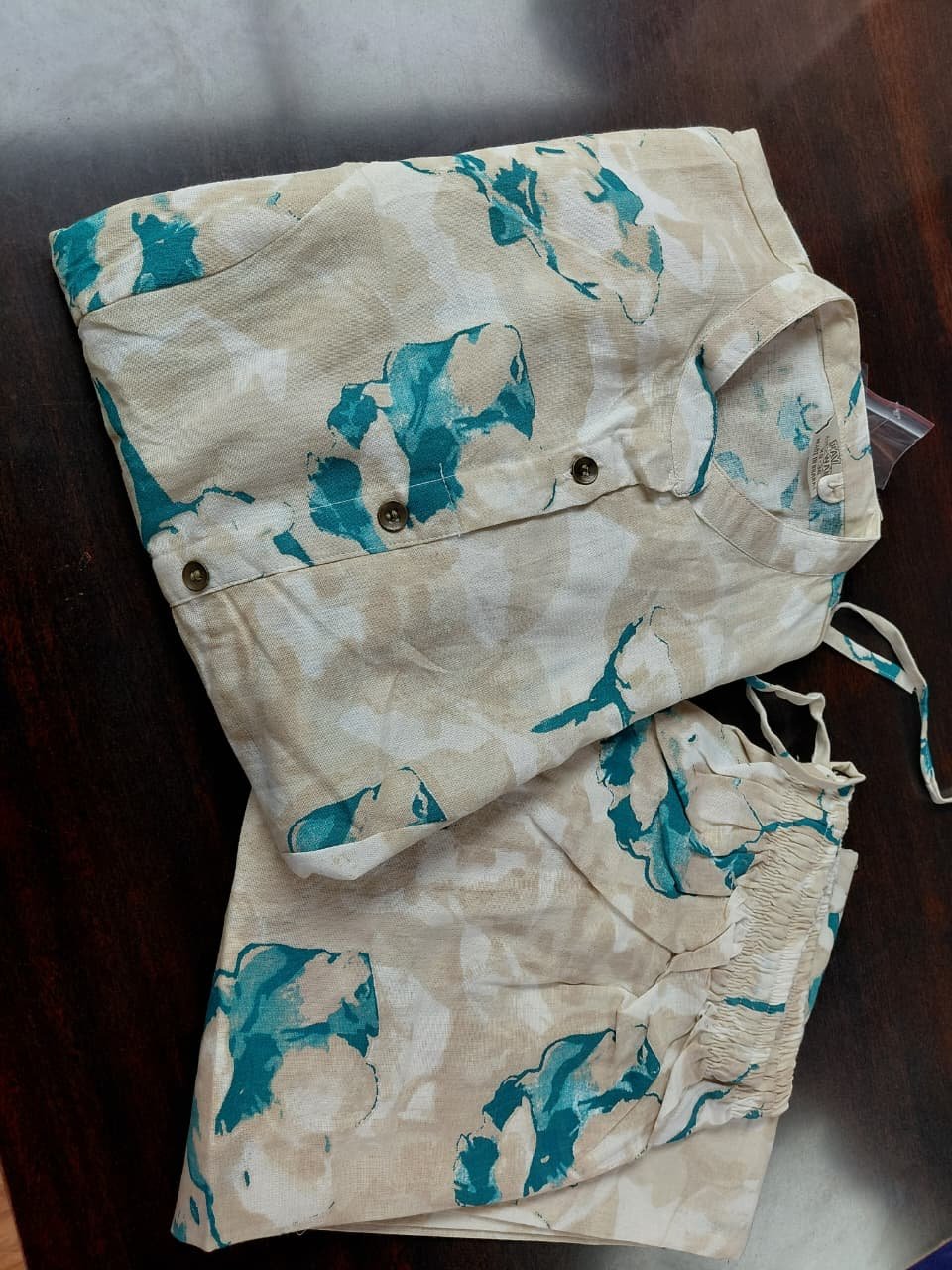 Khadi cotton printed Aline kurti with side pockets with pant 2 pcs set ( Coord set ) dhs 68+vat