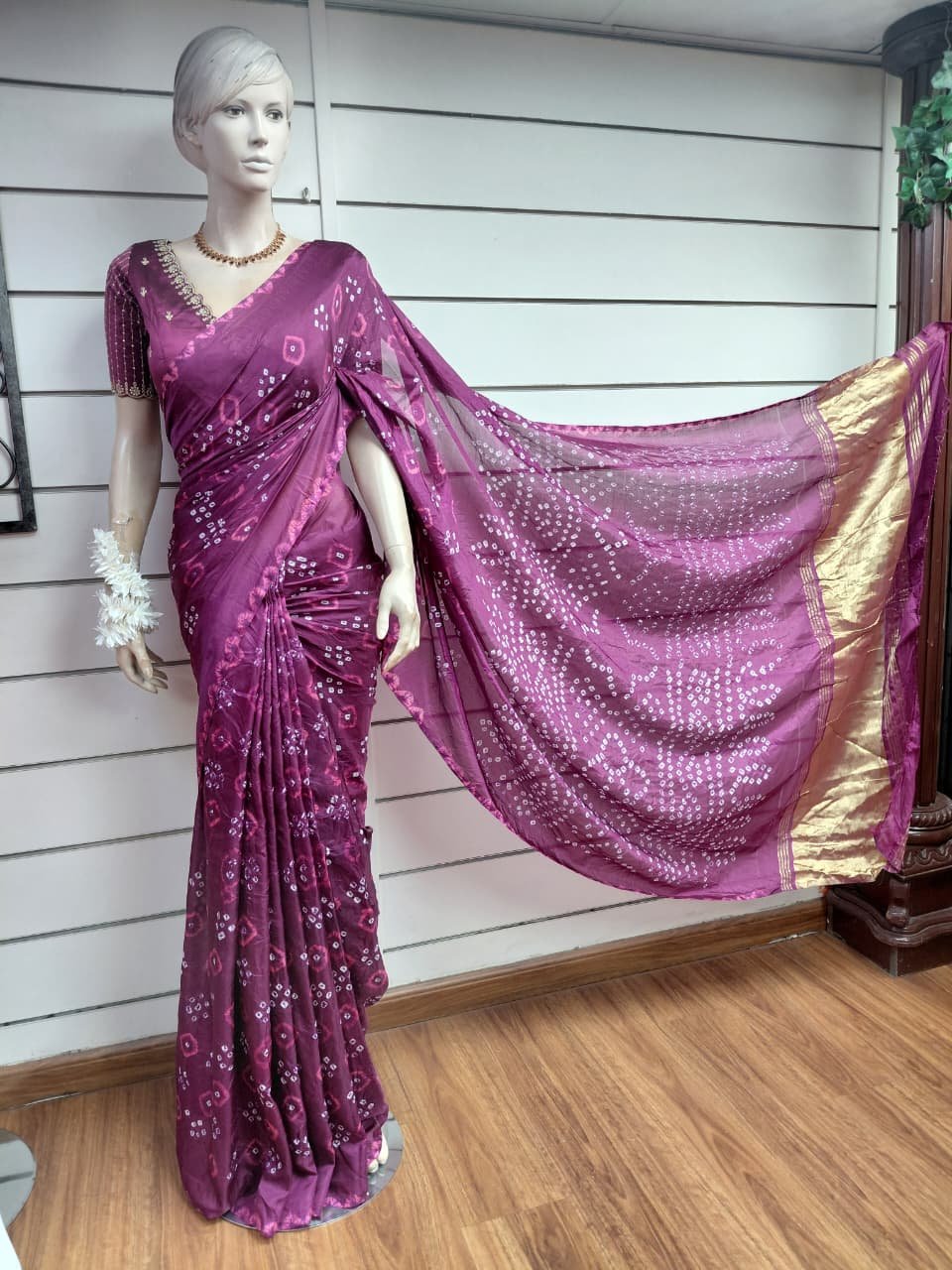 Bandhni silk saree with lagadi pallu & blouse pc Dhs 128+vat