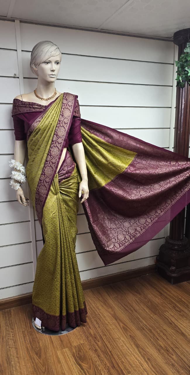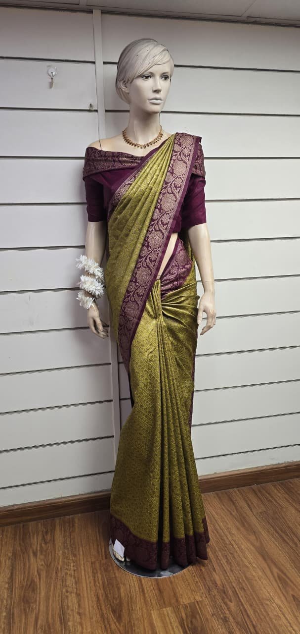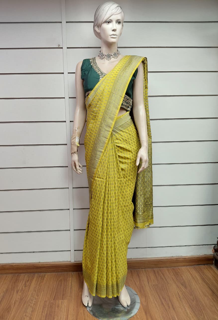 Lemon GREEN Georgette banarasi saree with blouse pc dhs 95+vat